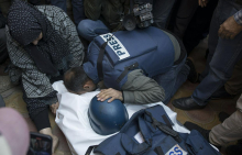 "Novinarji v Gazi niso stroji, so samo ljudje, a čutijo veliko odgovornost" 29. September 2025 (06:31) Izrael je v zadnjih dveh letih v Gazi ubil več kot 250 novinarjev, tarče so tudi njihove družine, a kot je za MMC poudaril predsednik Palestinskega novinarskega sindikata Naser Abu Bakr, kolegi vztrajajo s poročanjem, saj čutijo veliko odgovornost. (RTV SLO)